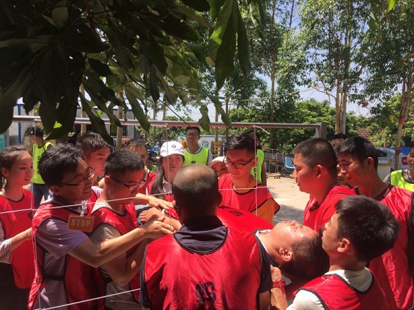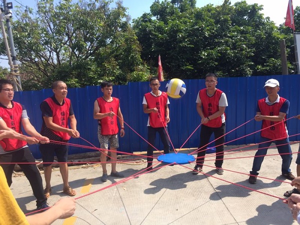經(jīng)過短暫的午休后,團(tuán)隊進(jìn)入了第四個項目“同心鼓”,一人墜球,其他人握繩顛球,領(lǐng)先完成20個顛球的隊伍為勝。從一開始的手忙腳亂,在游戲過程中不斷取長補(bǔ)短,團(tuán)結(jié)合作,到最后步驟一致,共同為了完成目標(biāo)而努力。所有成員在團(tuán)隊中找到自己的價值,發(fā)揮自己的作用,同時也學(xué)會聆聽他人,配合他人,關(guān)愛他人。